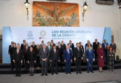 Al presidir los trabajos de la Sexagésima Tercera (LXIII) Reunión Ordinaria de la Conferencia Nacional de Gobernadores. invitó a las y los integrantes de este órgano colegiado a colaborar en ambiente de respeto, tolerancia y pluralidad para generar un espacio de construcción y no de confrontación.