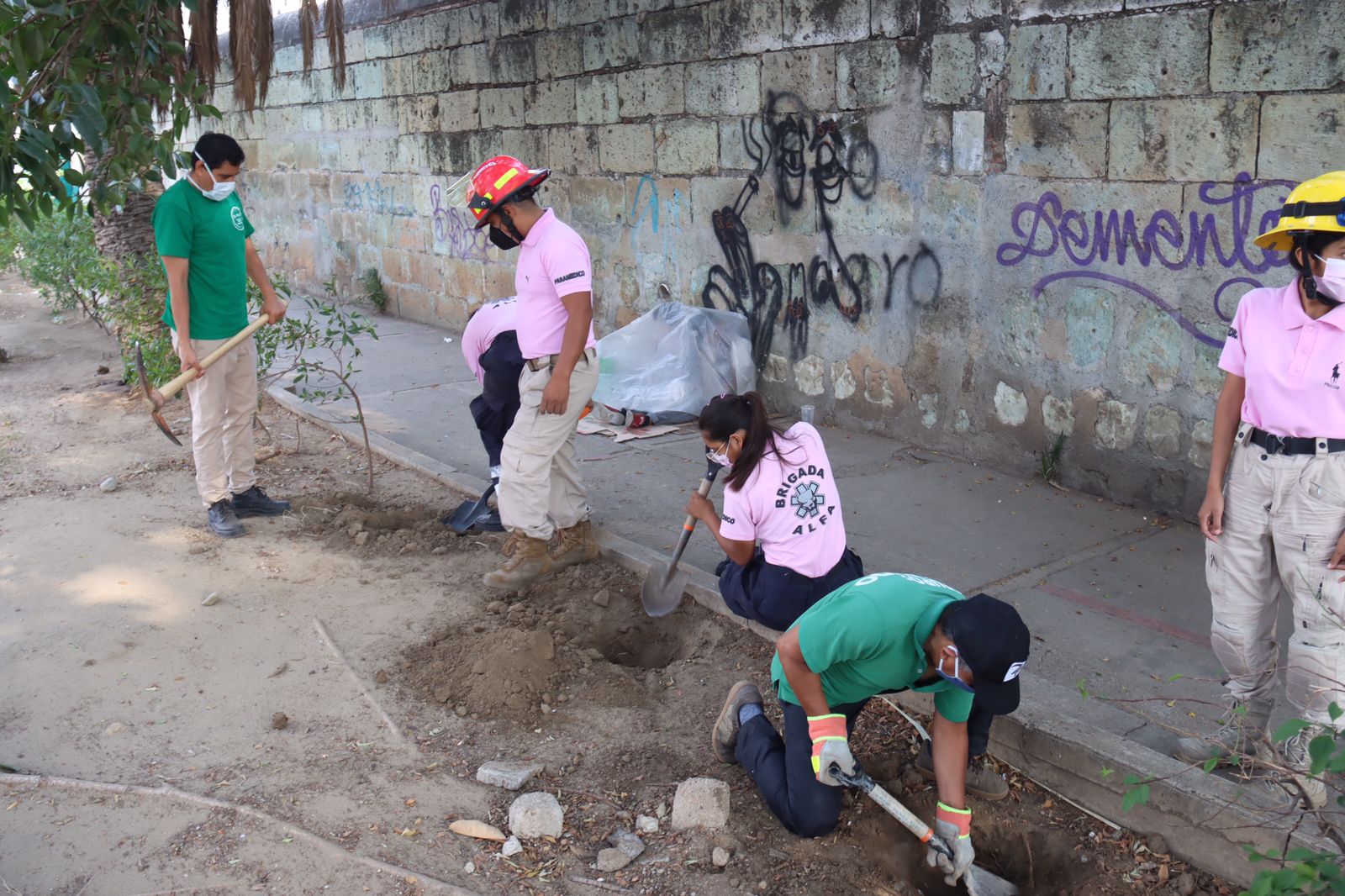 Integrantes del Grupo Salvando Vidas, el Colectivo de Organizaciones Ambientalistas de Oaxaca (COAO) y de la Brigada Alfa, iniciaron acciones para el rescate del jardín Sócrates.