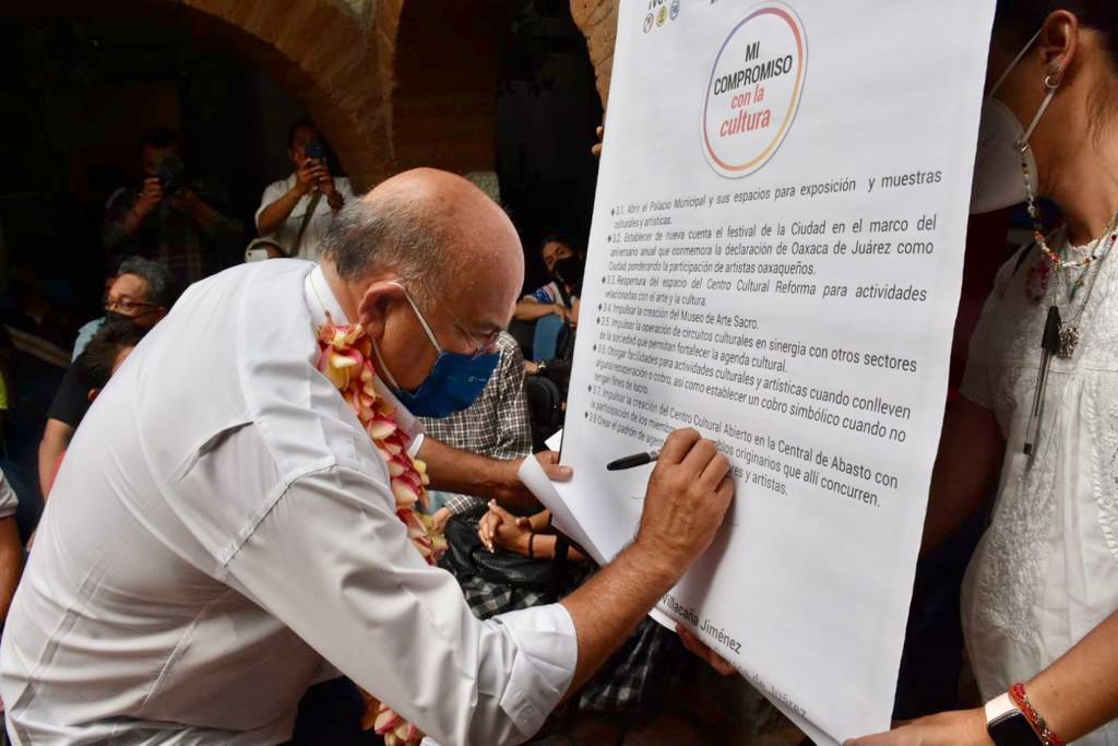 El candidato común del PRI, PAN y PRD, Javier Villacaña Jiménez signó sus compromisos de trabajo a emprender a partir del 1 de enero de 2022, para visibilizar, fortalecer y promover las diversas expresiones culturales y artísticas de la capital …
