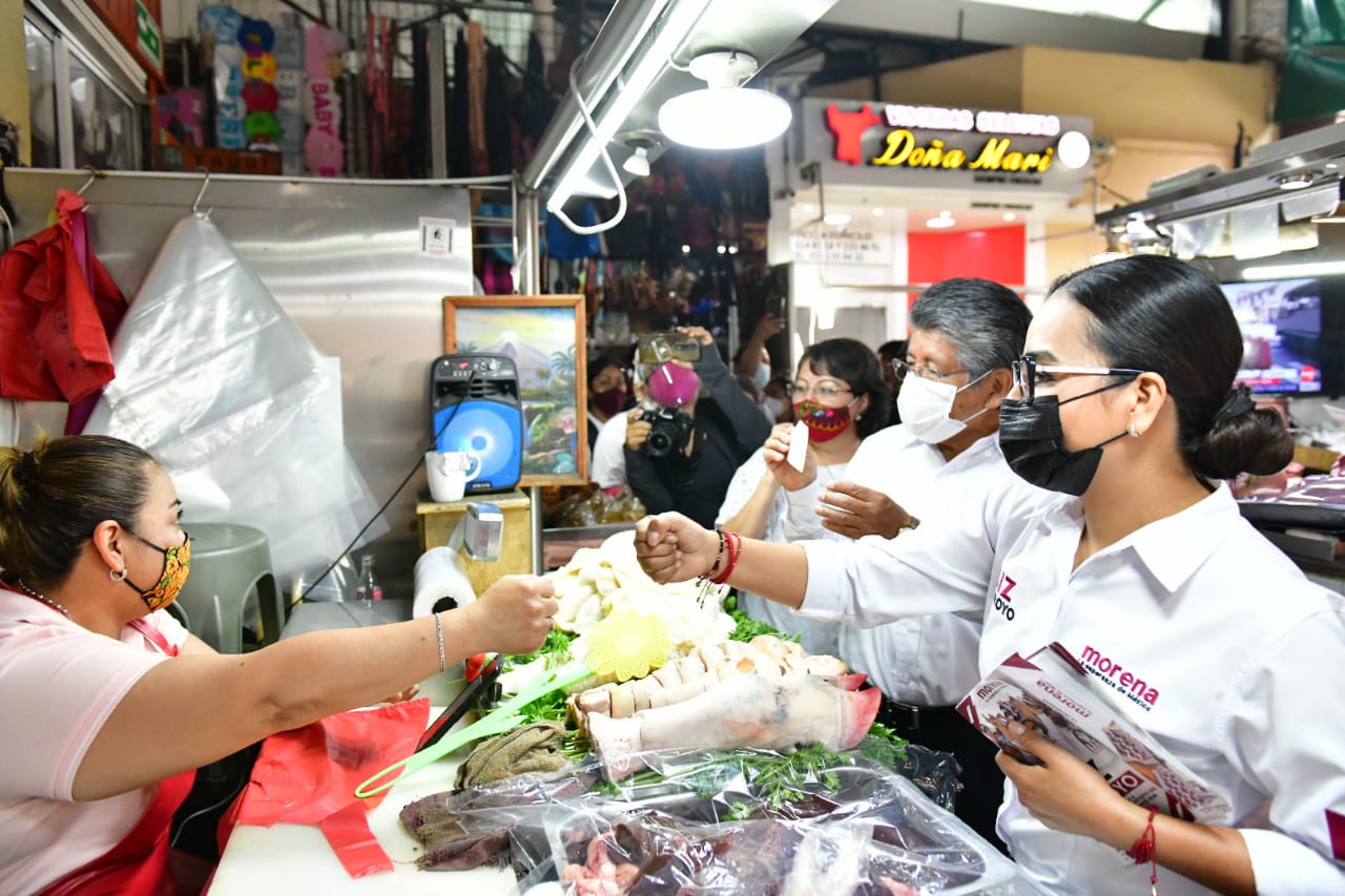 La candidata a la diputación local por el Distrito XIII Oaxaca Sur, recorrió los pasillos de estos emblemáticos mercados del Centro Histórico. · Oaxaca de Juárez, Oax; 20 de mayo de 2021.- Locatarias y …