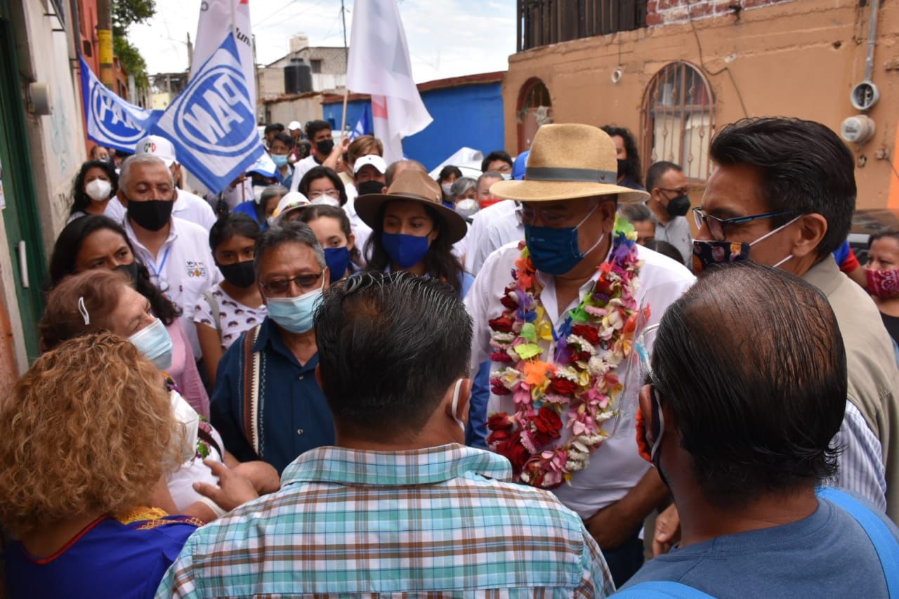 “Candidato cuenta conmigo porque ya queremos que vuelva lo bueno para Oaxaca”, dijo Jorge Mata, uno de los locatarios, al aspirante por el PRI, PAN y PRD a la presidencia municipal, quien sigue dando muestra de su convicción por el rescate de la grandeza de la capital.