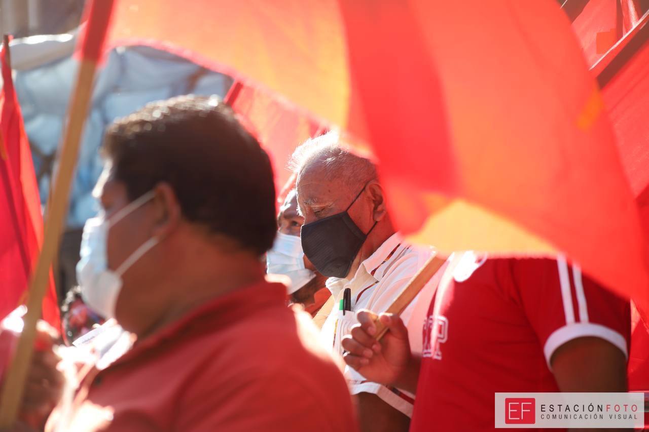 Exigió el cese al hostigamiento a sus compañeros de Huatulco y por la regularización de las tierras para vivienda, la garantía de trabajo, apoyo económico y abasto alimentario a los trabajadores del campo y la ciudad ante la crisis actual.