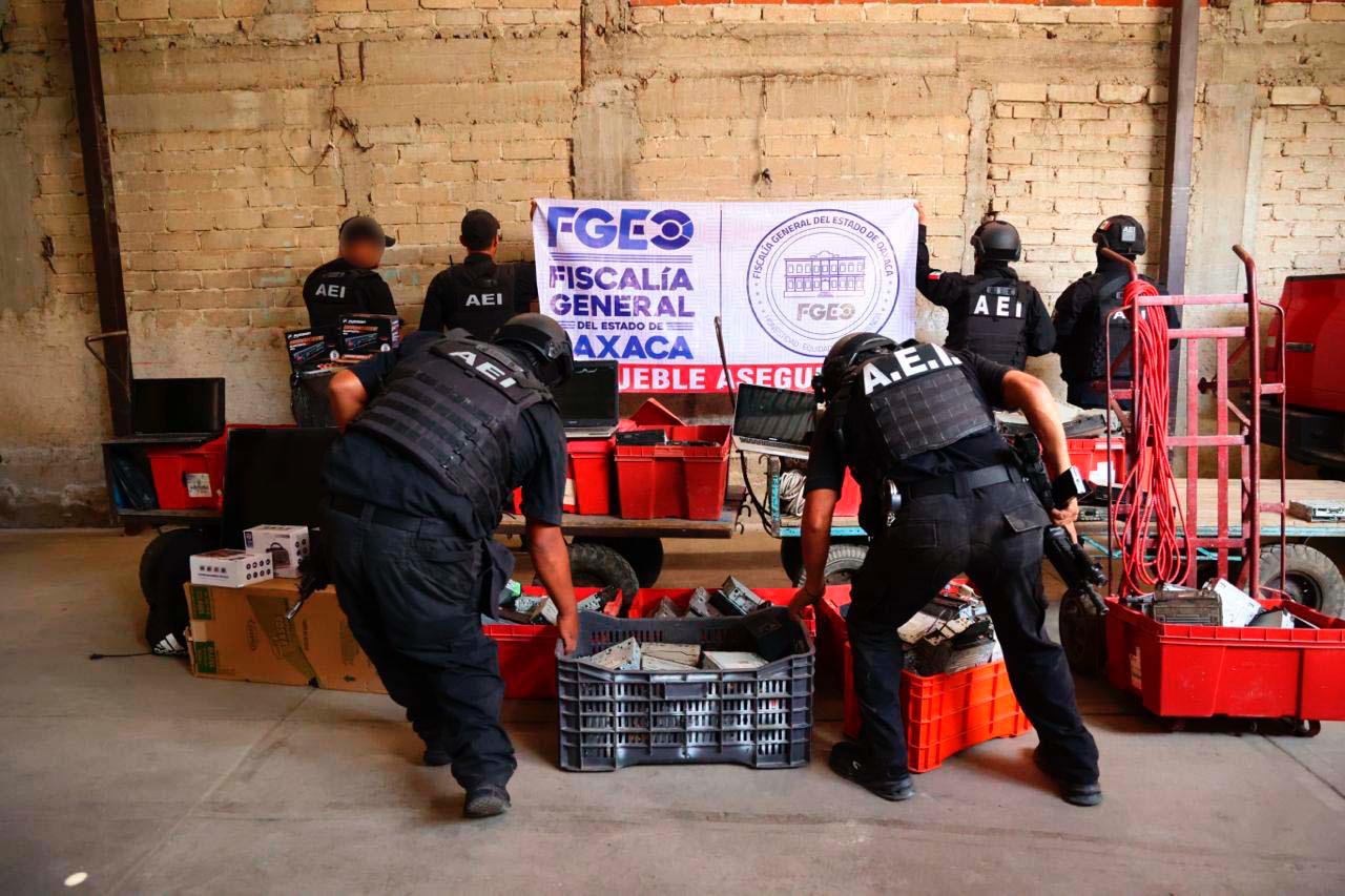 Oaxaca de Juárez, Oax., a 24 de octubre de 2025.- Dentro de los resultados por la implementación de la tercera etapa de la Operación Pescador, que es parte de la estrategia estatal “Oaxaca Segura”, la Fiscalía General del Estado de Oaxaca desmanteló un centro de operaciones y comercialización de objetos robados donde operaba una célula delictiva dedicada al robo de vehículos en su modalidad de cristalazos, espacio que también ocupaban como punto de venta de drogas, en inmediaciones de la Central de Abasto de la capital.